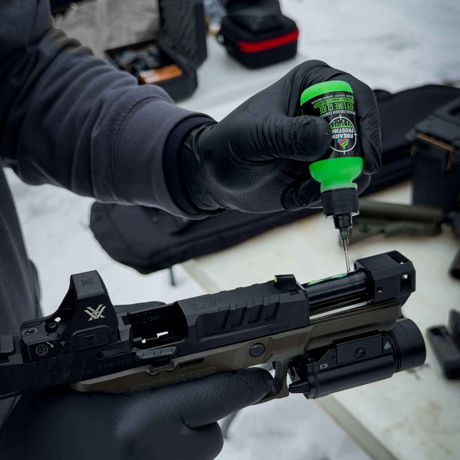 Meet the most versatile Frosting: Key Lime Glide. The ideal balance between thick and thin, it spreads clean, locks in place under recoil, and keeps parts moving with predictable, refined smoothness. Built to perform across platforms and conditions, it will not gum up, wash out, or fade when things get demanding.
